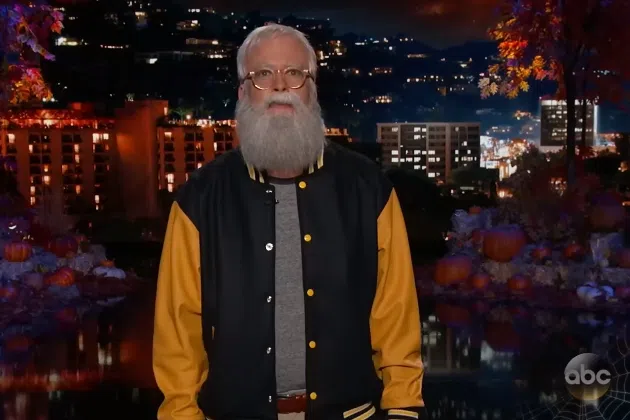 You just gotta love Dave Grohl, who is not only an amazing musician with the Foo Fighters, but is also one hilarious guy with a penchant for being quite the smart ass. Last night, as Jimmy Kimmel is out caring for his son, who is having heart surgery, Grohl stepped into the hosting chair. Since it was Halloween night, Dave decided to go full on Halloween, and dress up as another Dave…….as in Letterman!