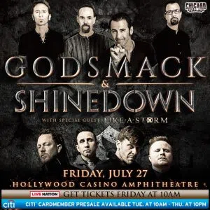 Get ready to rock HARD this summer when Godsmack and Shinedown co-headline summer amphitheater tour with supporting acts Like A Storm and Red Sun Rising. In addition both bands are gearing up to release new albums!