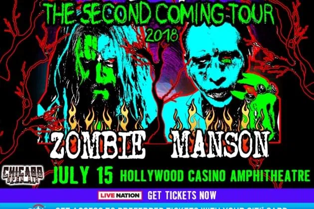 Another day and another big summer co-headlining tour has been announced, this time it’s Rob Zombie & Marilyn Manson and the Twins of Evil Tour at the Hollywood Casino Amphitheatre in Chicago on July 15th.