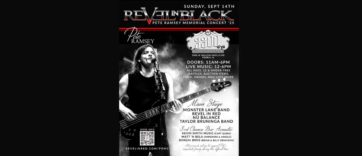 The Greater Peoria music world was rocked by the tragic loss of one of their own in July, Revel in Red's bassist Pete Ramsey. Pete was a remarkable musician and human being-known for his technical ski...